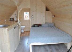 Equipement sanitaire : -Chauffe eau 80litres -WC -Evier céramique -Cabine de douche -Evier cuisine Meubles -Alcôve :Lit de 140/200 avec matelas -Placards de cuisine -Petite table pliante -2 tabourets -Petite armoire -Petit placard dans la salle de bain.